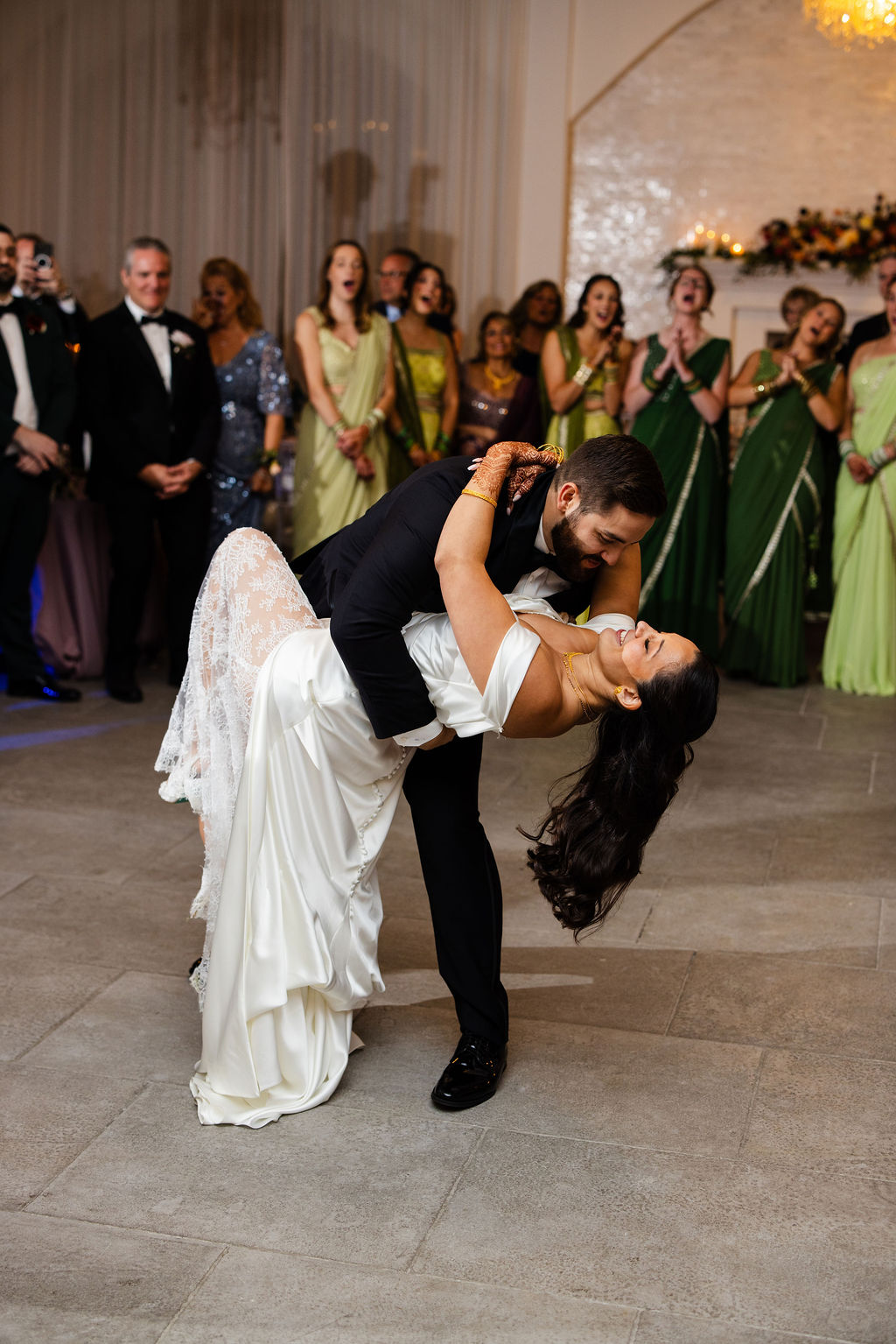 One of our favorite moments came during Jordan’s reception outfit change. She switched into a more traditional Indian dress. The energy in the room completely shifted in the best way.